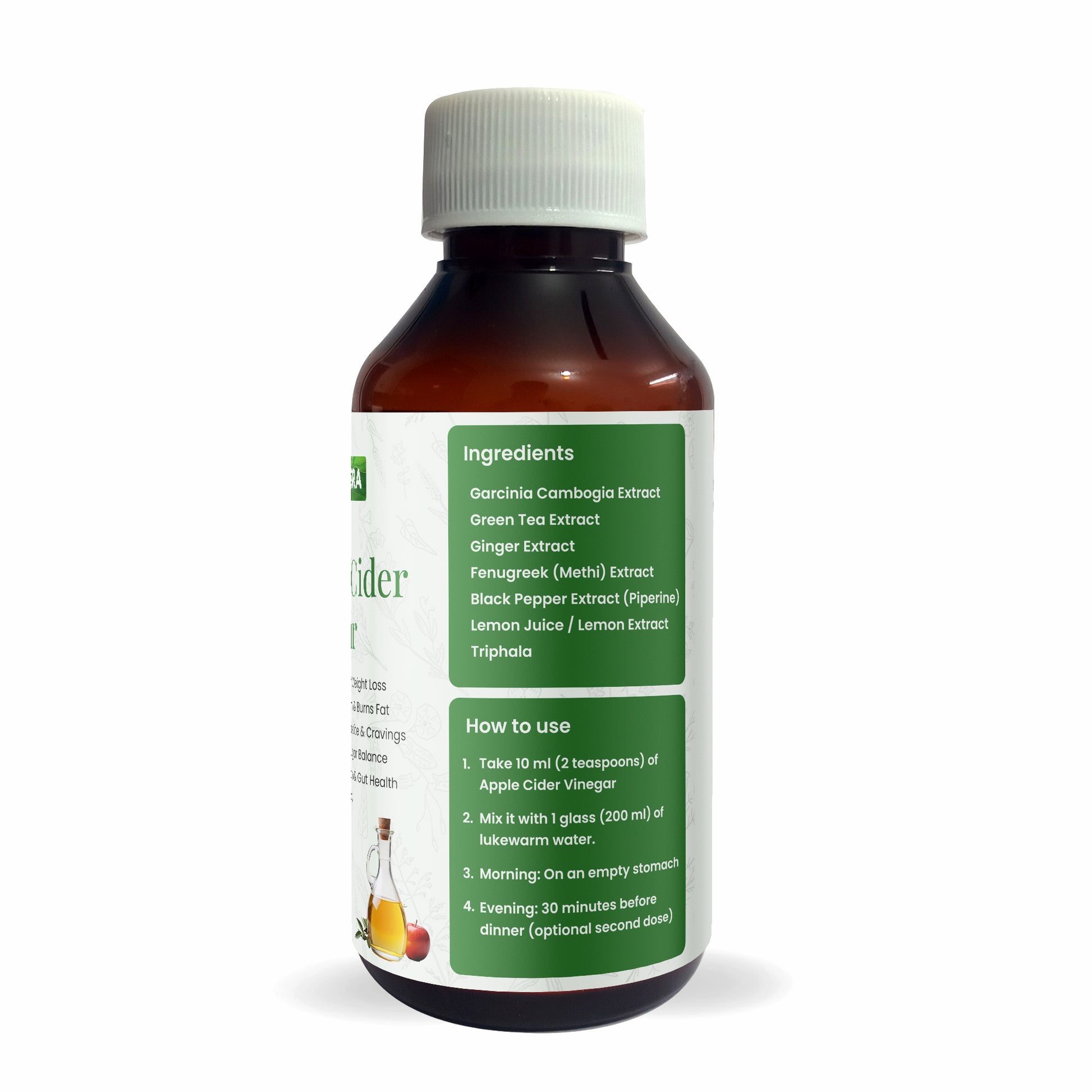 Ayusra Apple Cider Vinegar is a premium wellness drink infused with a unique blend of Apple Juice, Garcinia Cambogia, Green Tea, Ginger, and Triphala. Formulated to support weight management, digestion, and detox, this Ayurvedic blend is ideal for health-conscious individuals. It not only helps boost metabolism and burn fat but also enhances gut health and appetite control — naturally and effectively.